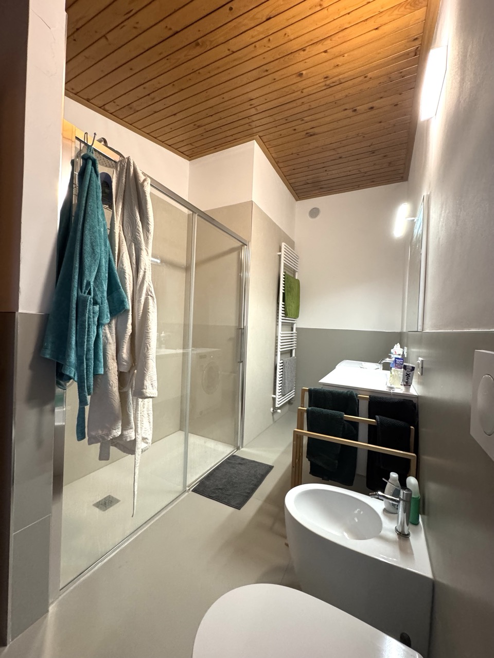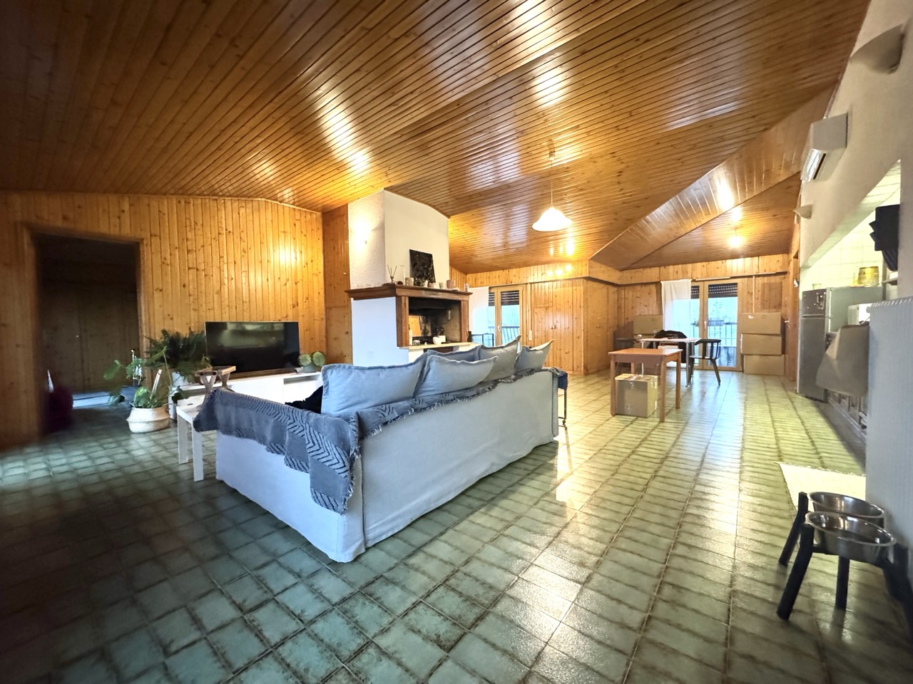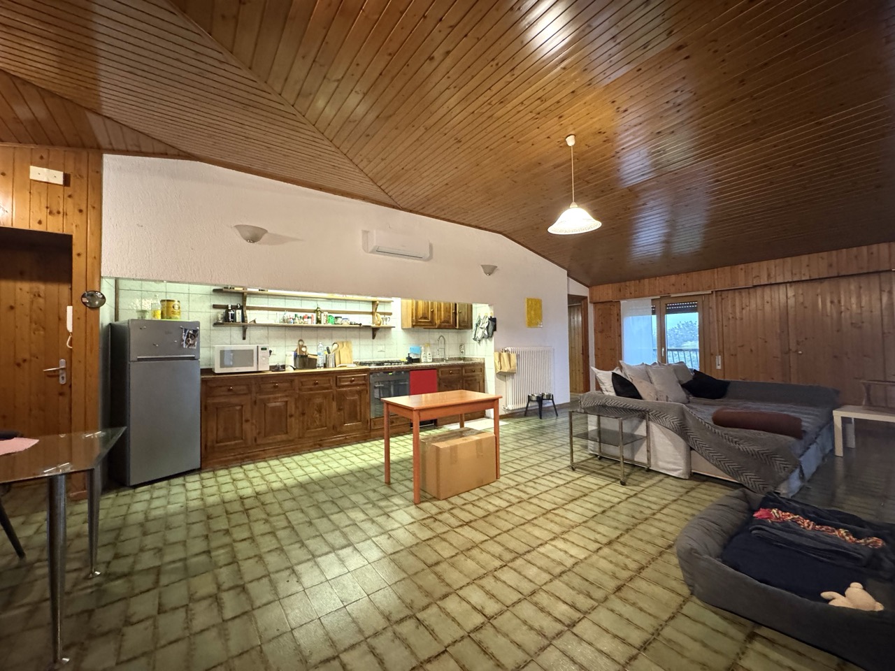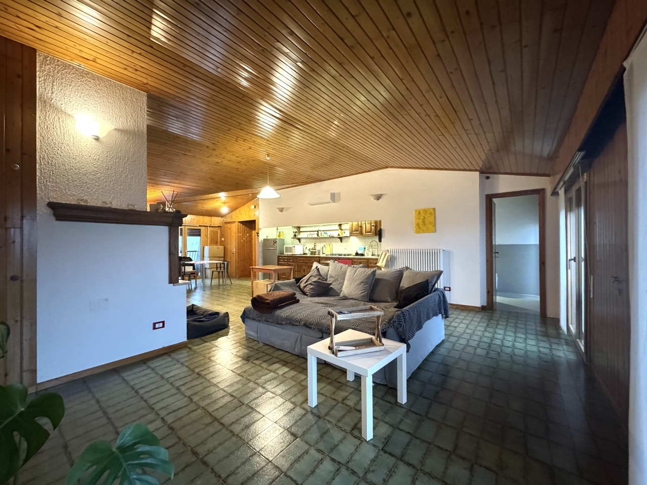 All'ultimo piano di una piccola palazzina, è disponibile un grande appartamento bicamere parzialmente ristrutturato. E' composto da ingresso su una grandissima zona giorno con un caminetto al centro, due camere matrimoniali e bagno appena ristrutturato. L'appartamento è libero su 3 lati ed è caratterizzato da diverse porte finestra con uscita su piccoli terrazzi, che offrono alla casa un ottimo ricambio d'aria e la possibilità di uscire all'aria aperta. Sono stati sostituiti di recente i serramenti. L'appartamento è molto luminoso, è caratterizzato da legno ovunque simil chalet di montagna e armadi a muro a scomparsa in ogni stanza. Doppio posto auto coperto in lunghezza all'interrato e posti auto scoperti a disposizione. Il riscaldamento è centralizzato e la caldaia è stata sostituita con una di recente generazione con conta-consumi in modo che uno paghi ciò che consuma. Le spese condominiali comprensive di riscaldamento e acqua. L'appartamento è arredato di cucina, tavolo, sedie, condizionatore. Solo per persone referenziate. Per info e appuntamenti chiamare ORARIO UFFICIO al CELL. 3381150102